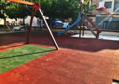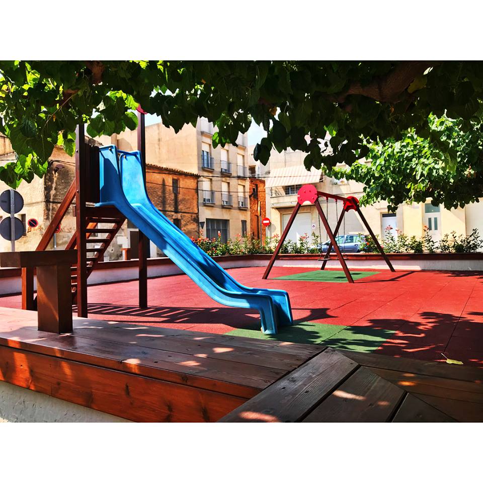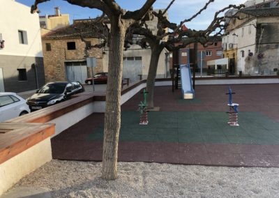 Reforma de la plaza de la Raval de Cristo para convertirla en un parque infantil hecho de madera, con instalación lumínica y jardín alrededor.